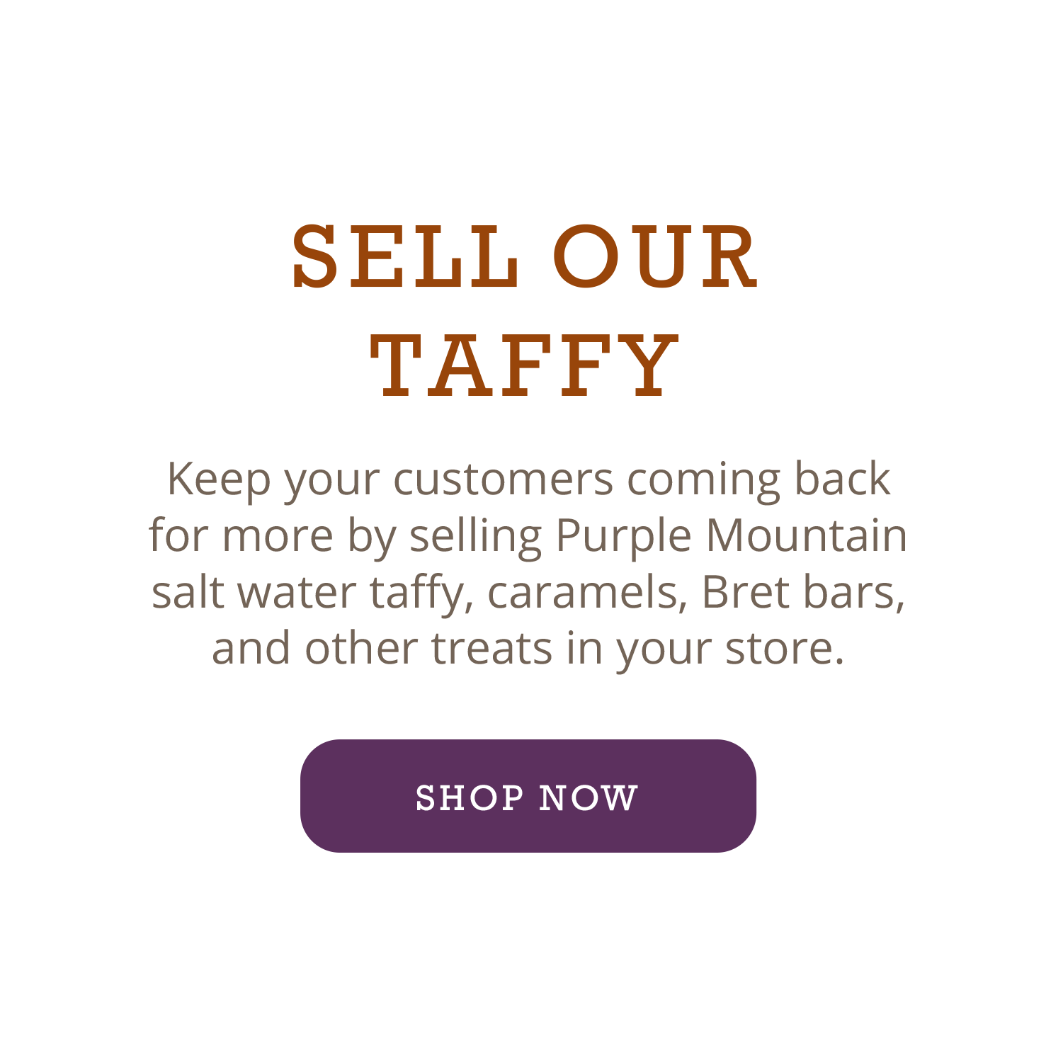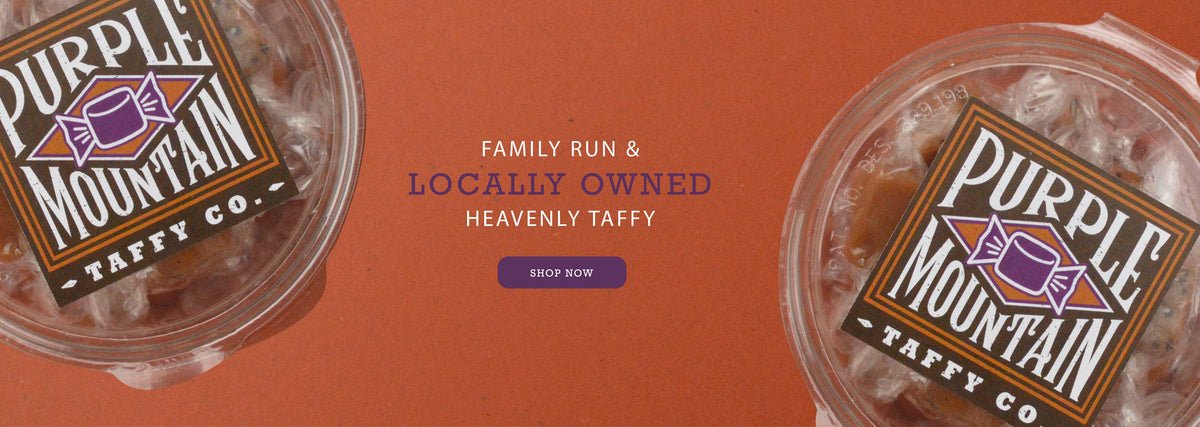 Purple Mountain Taffy Company is owned and operated by the same family that owns Laura’s Fine Candies, Hayley’s Homemade Ice Cream, and the Danish Cone Factory, all located in Estes Park, Colorado. We’ve opened an online store so our customers can get the best Purple Mountain salt water taffy, caramels, and other gourmet treats whenever they want them. But now, rather than driving all the way up into the mountains to get some, our delicious candy comes to you.